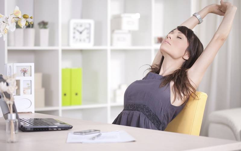 Melakukan perenggangan tubuh atau stretching saat bekerja, membantu kamu melancarkan peredaran darah ke seluruh bagian tubuh, juga otak. Lakukan sedikit olehraga jika tubuh dan pikiran kamu lelah dan jenuh dengan pekerjaan. Hal ini tidak hanya dapat membuat kamu lebih rileks namun juga membuat menurunkan tingkat stres kamu akan pekerjaan